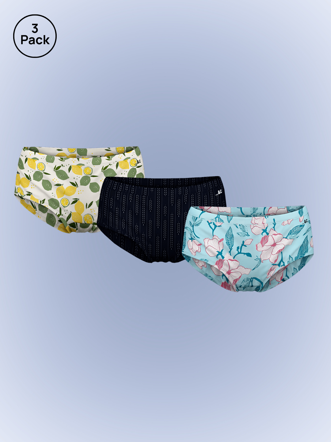 WOMEN'S HIPSTER BRIEF - PACK OF 3 - PRINTS & JET