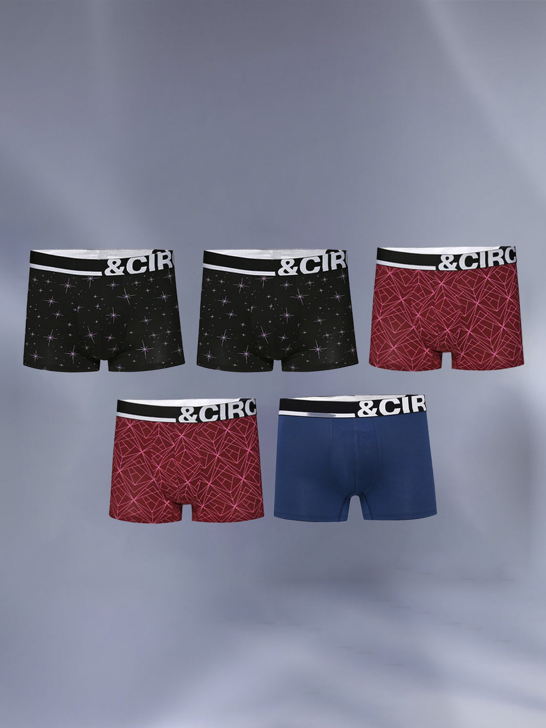 MEN'S TRUNKS - PACK OF 5 - PRINTS & MIDNIGHT BLUE
