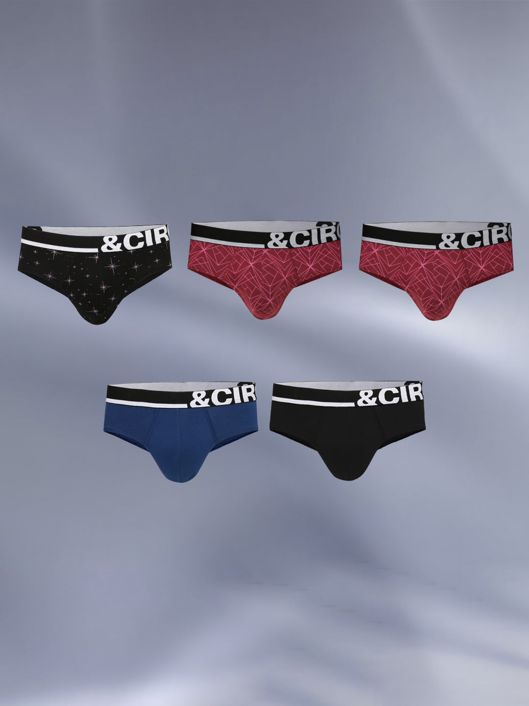 MEN'S BRIEFS - PACK OF 5 - PRINTS, MIDNIGHT BLUE & JET
