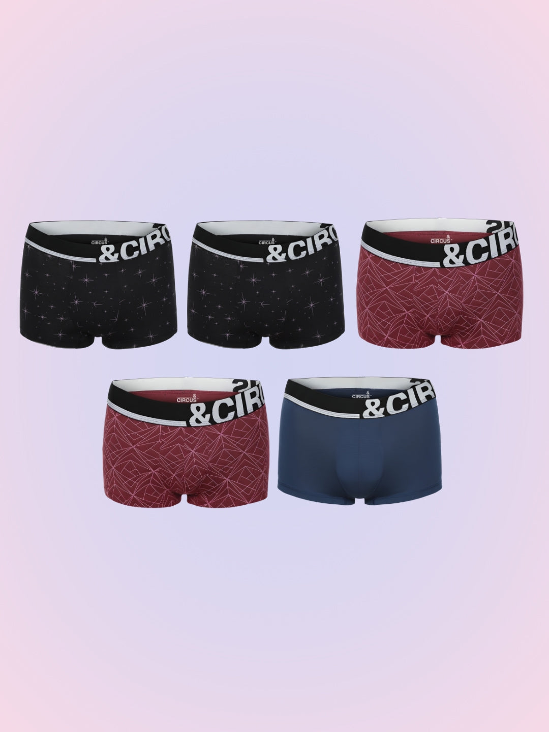 MEN'S TRUNKS - PACK OF 5 - PRINTS & MIDNIGHT BLUE
