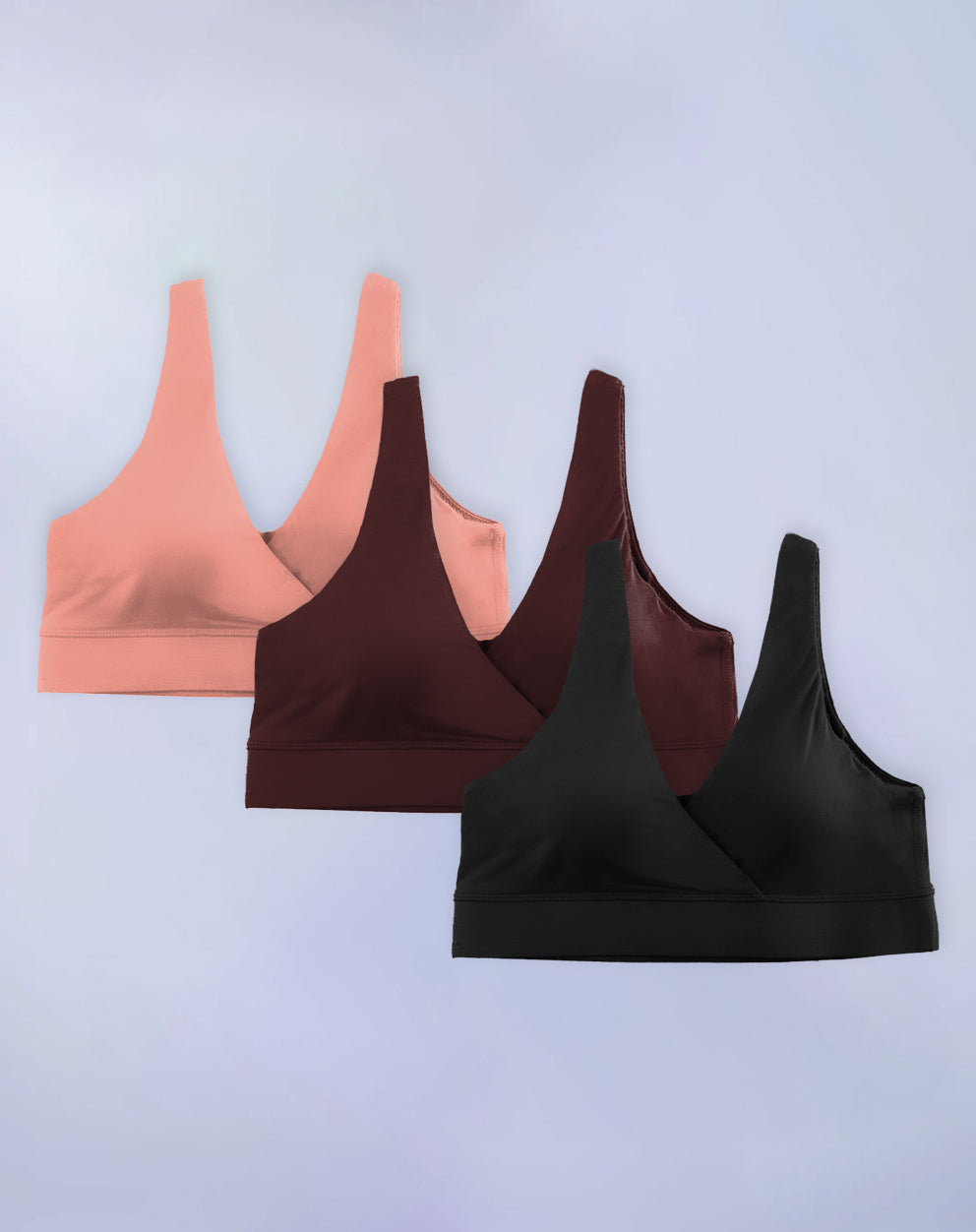 PURESOFT PADDED PLUNGE BRA - PACK OF 3 - ALMOND NUDE, UMBER, & ONYX