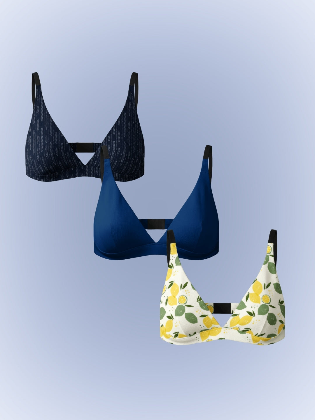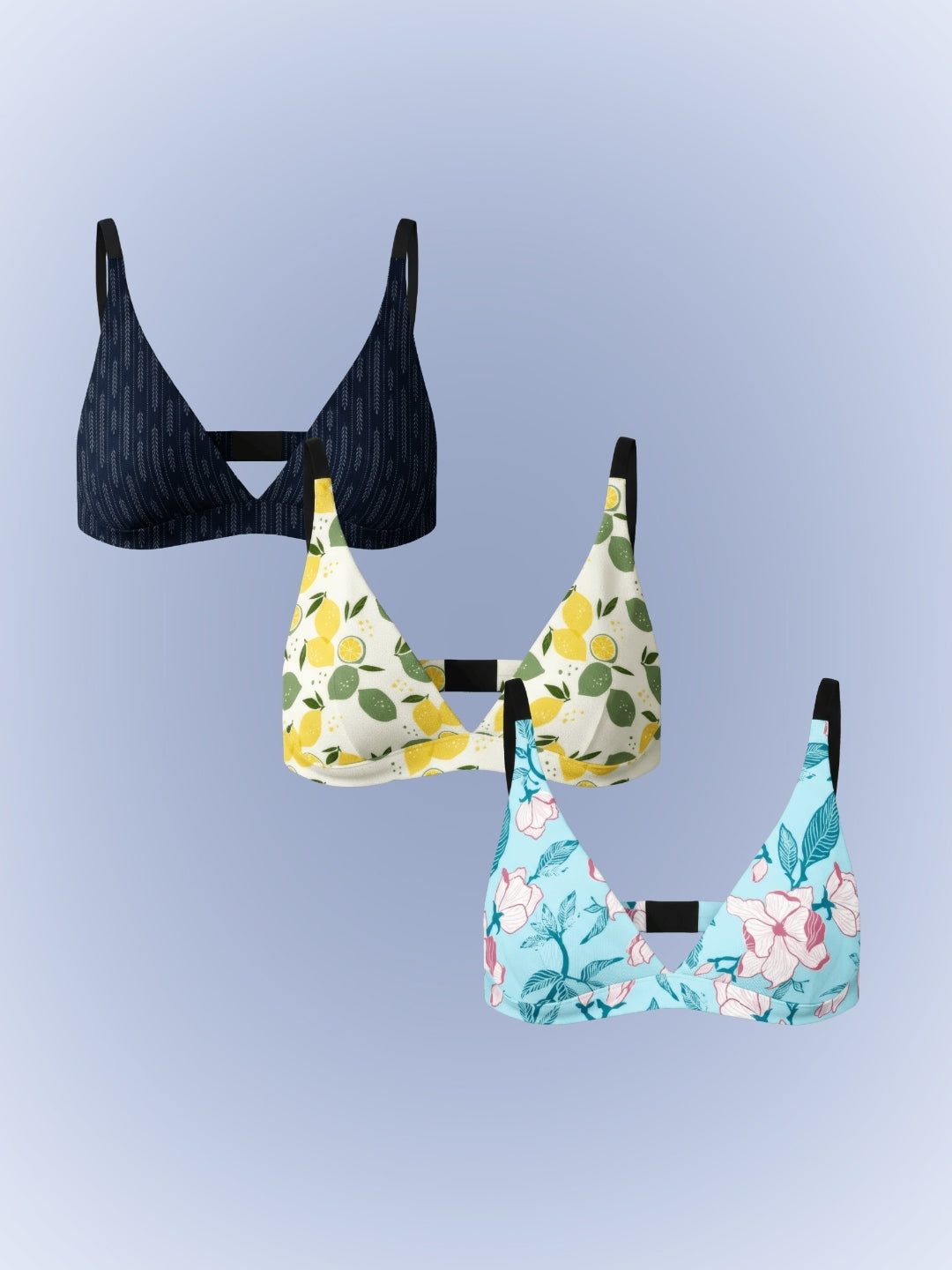 PURESOFT ADJUSTABLE TRIANGLE BRA - PACK OF 3 - PRINTS & SOLID