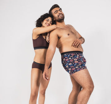 At Tailor And Circus, we offer a wide variety of styles for our underwear for him & her. This includes briefs, trunks, boxer-brief, & boxers for men, and bikinis, hipsters, boyshorts, bare hipsters, and even maternity panties for women across all our prints & colours suiting different tastes and preferences. You can also create a him & him or her & her matching set and buy a trunks set or a matching bikini pair for both of you.