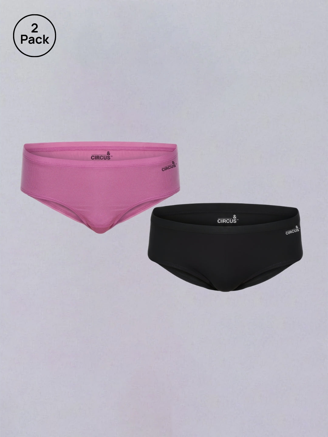 &Circus pack of 2 women's bare hipster panties is designed for ultimate comfort, with moisture absorbing, soft & lightweight fabric, with supportive and modern design. Jet: A clinical edge to match what you bring to the table. Take it all in. Focus on just one. Lilac: A soft touch on a bright shade. Not so subtle, not so obvious. Just like you. Our Jet & Lilac pack of 2 hipster briefs is available in sizes from S-2XL.