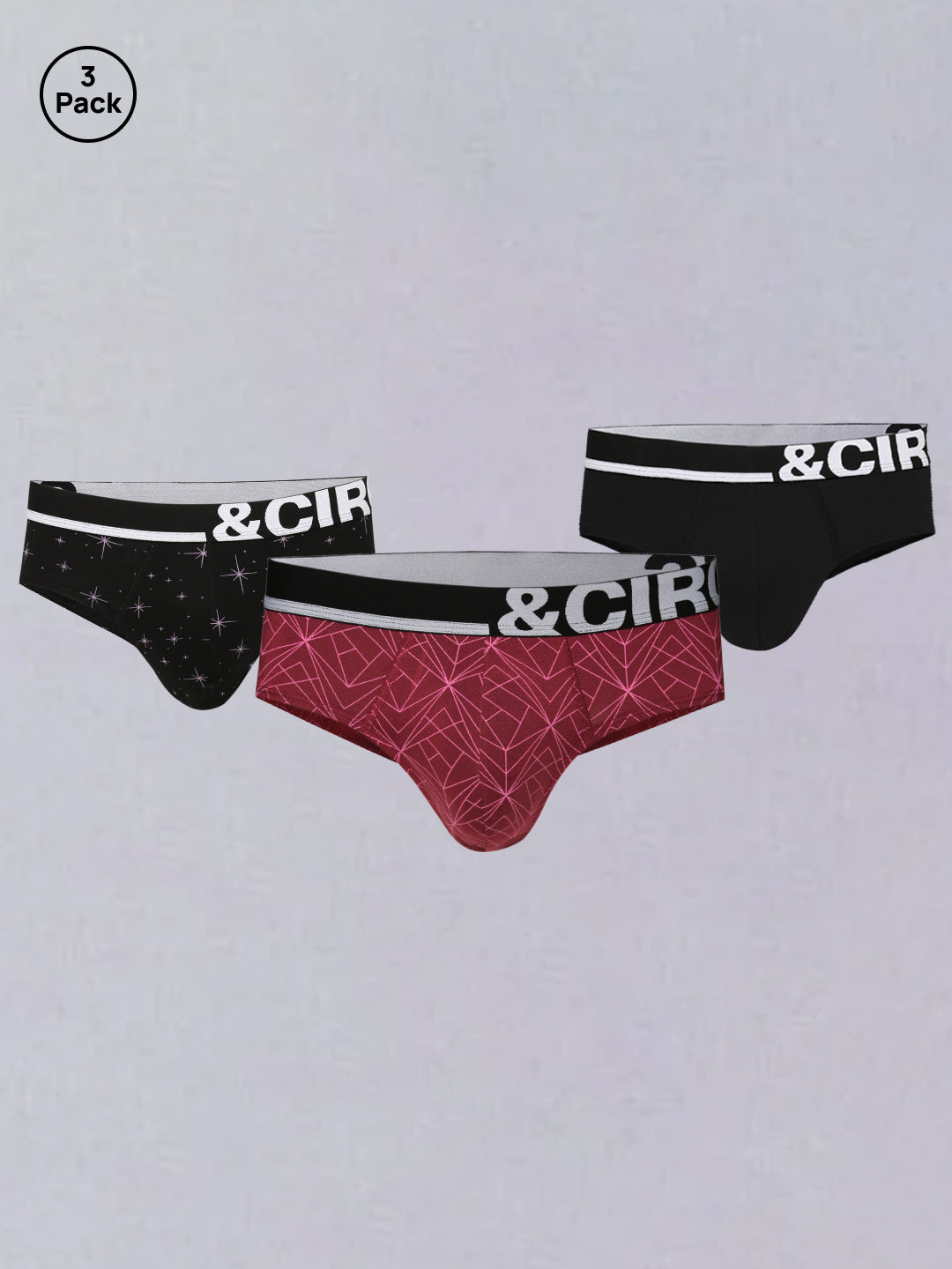 &Circus pack of 3 prints & solid Men's briefs from the AirSoft collection are lightweight everyday essentials, built to give you a fine blend of functionality, style, and comfort with modest coverage.