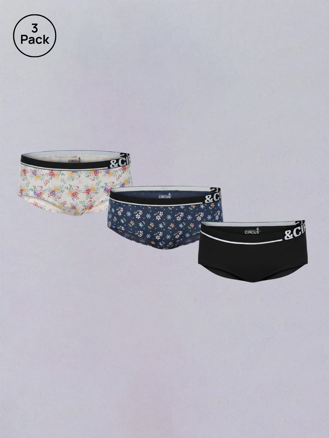 &Circus pack of 3 hipster briefs for women is designed for ultimate comfort, with moisture-absorbing, soft & lightweight fabric, with supportive and modern design.