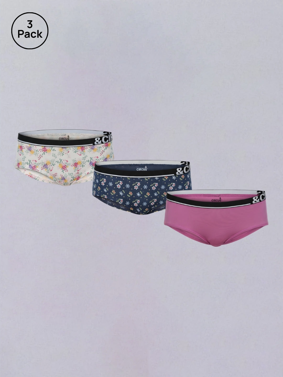WOMEN'S HIPSTER BRIEF - PACK OF 3 - SOLIDS & PRINTS