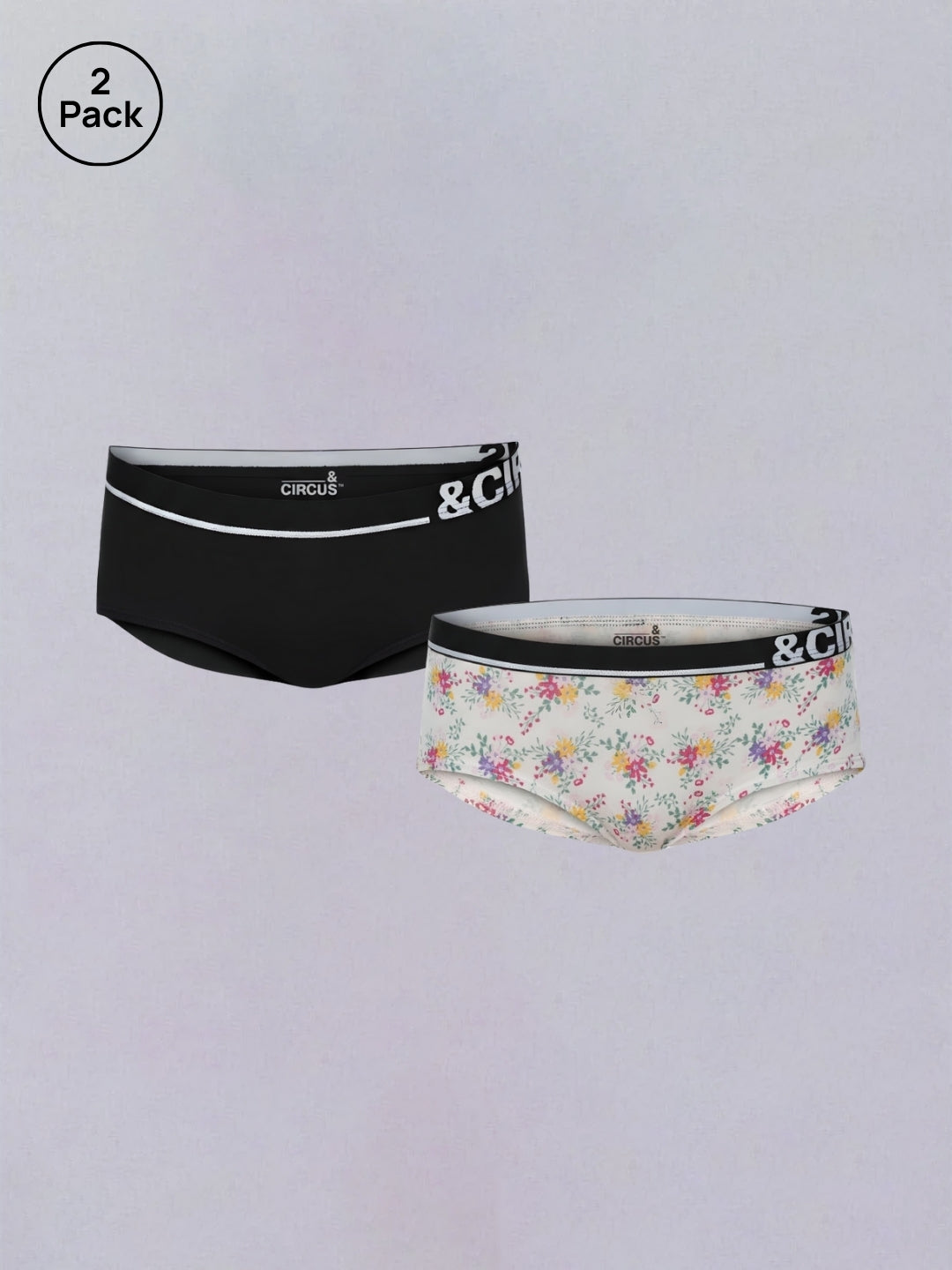 &Circus pack of 2 hipster briefs for women is designed for ultimate comfort, with moisture-absorbing, soft & lightweight fabric, with supportive and modern design.