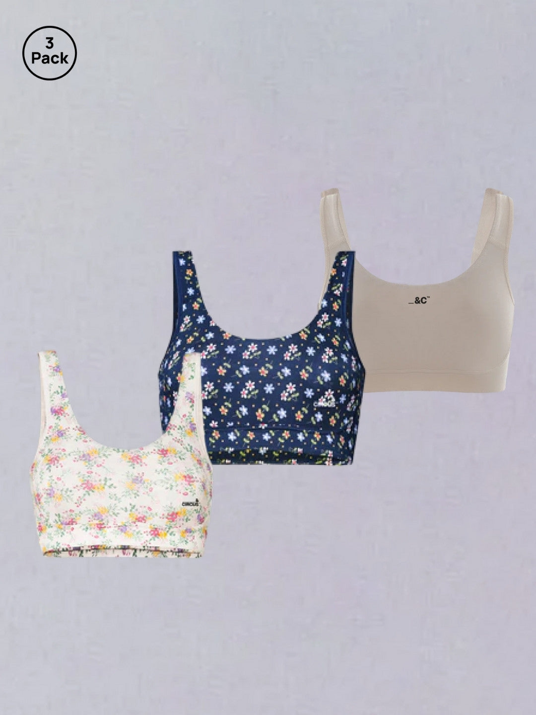 &Circus low-impact sports bras for women are designed to give you additional support without discomfort; these bras have no pads, no hooks, no wires, just slip-on comfort. Our Summer Bouquet, Wedding Day & Desertrock combo pack of 3 is perfect for low-impact activities throughout the week, offering variety in mood and style.