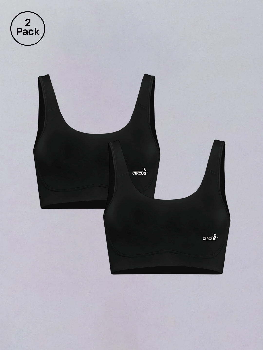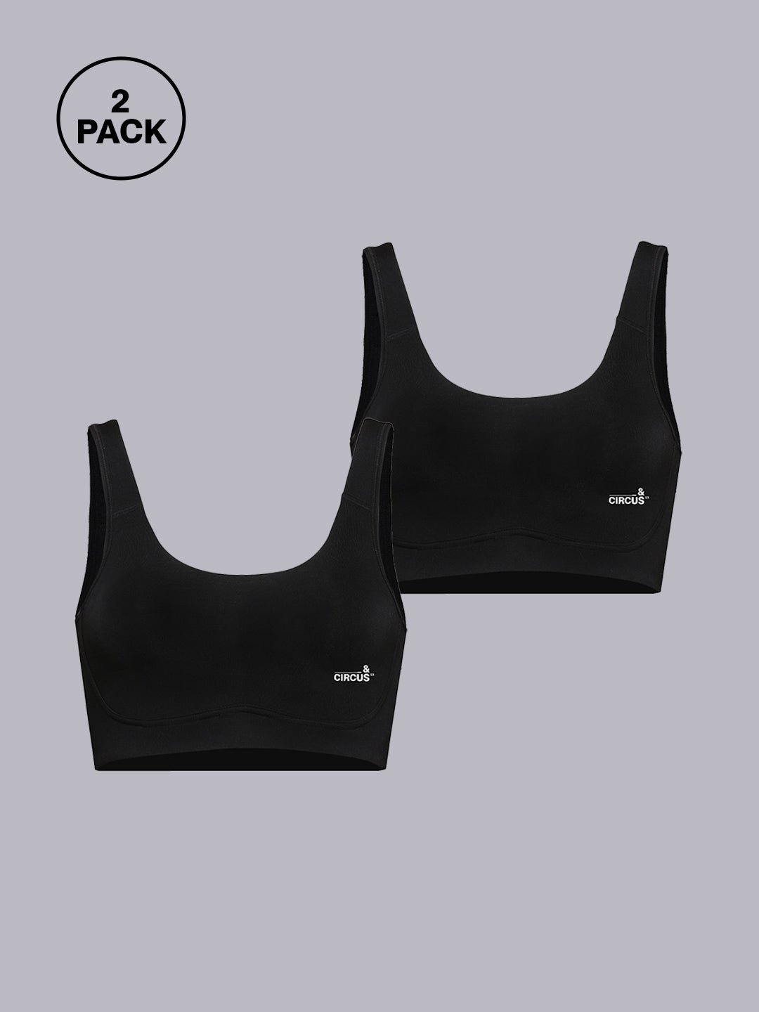 &Circus low-impact sports bras for women are designed to give you additional support without discomfort; these bras have no pads, no hooks, no wires, just slip-on comfort. Our Jet pack of 2 bras is ideal for low-impact activities. Jet: A clinical edge to match what you bring to the table. Take it all in. Focus on just one. Pack of 2 Jet low-impact sports bras is available in sizes from S-2XL.