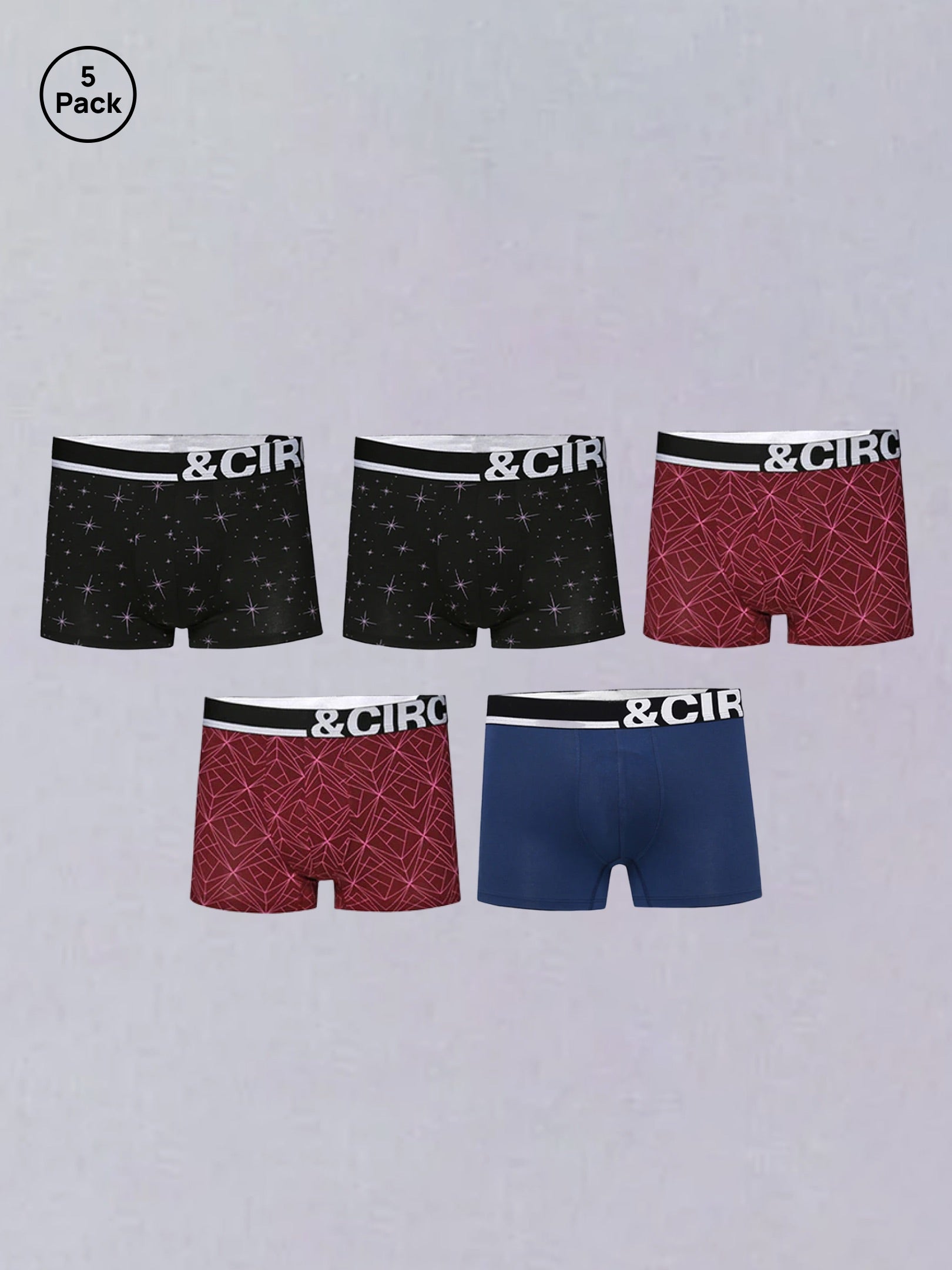 MEN'S TRUNKS - PACK OF 5 - PRINTS & MIDNIGHT BLUE