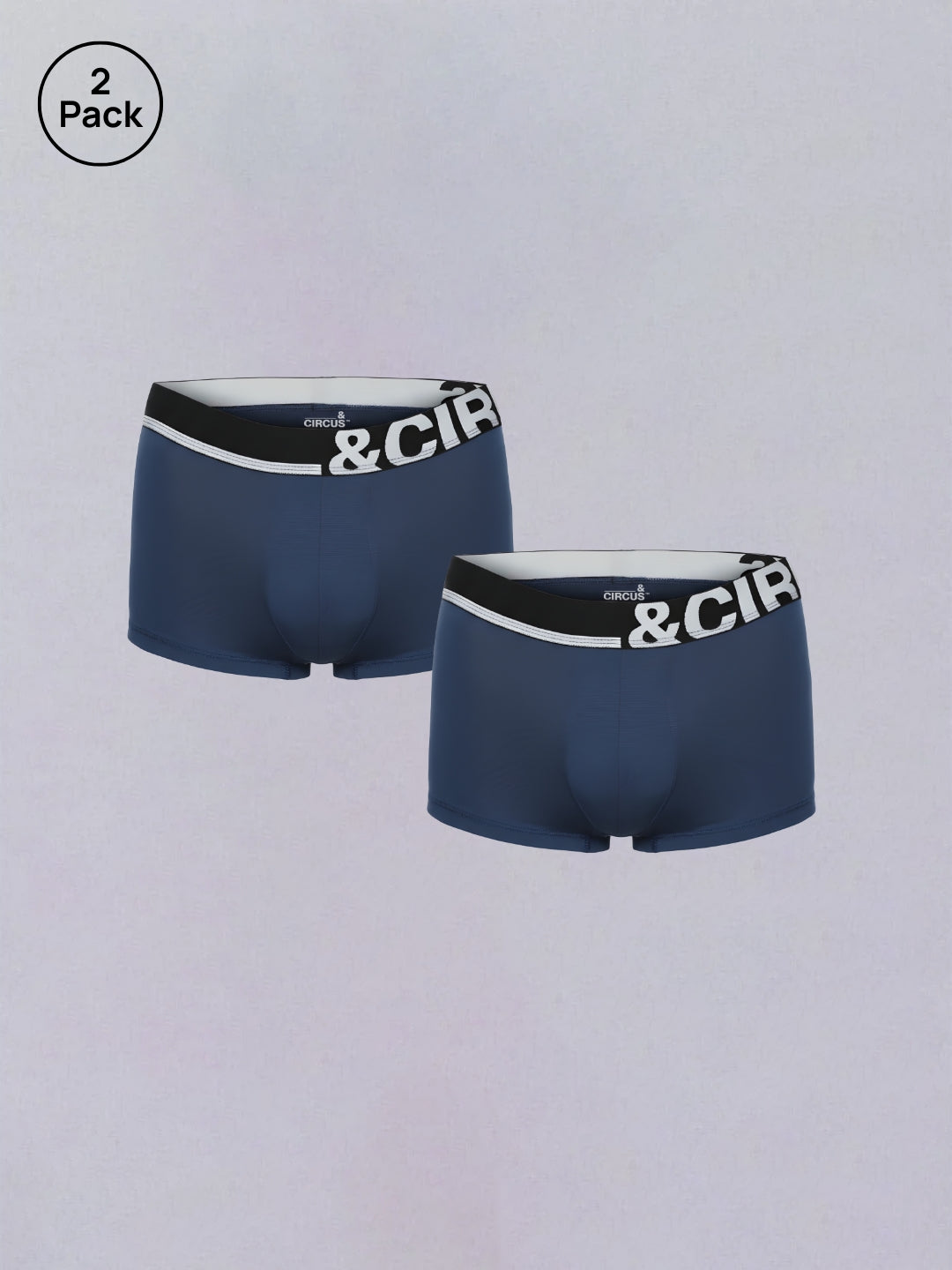 &Circus Men's trunks from the AirSoft collection are lightweight everyday essentials, built to give you a fine blend of comfort, style, and performance, with full coverage & adaptive pouch. Midnight Blue: The colour of the new year. Rich but chirpy. Sharp but silly. The you after the sun sets. Our solid Midnight Blue pack of 2 trunks is available in sizes from S-2XL.