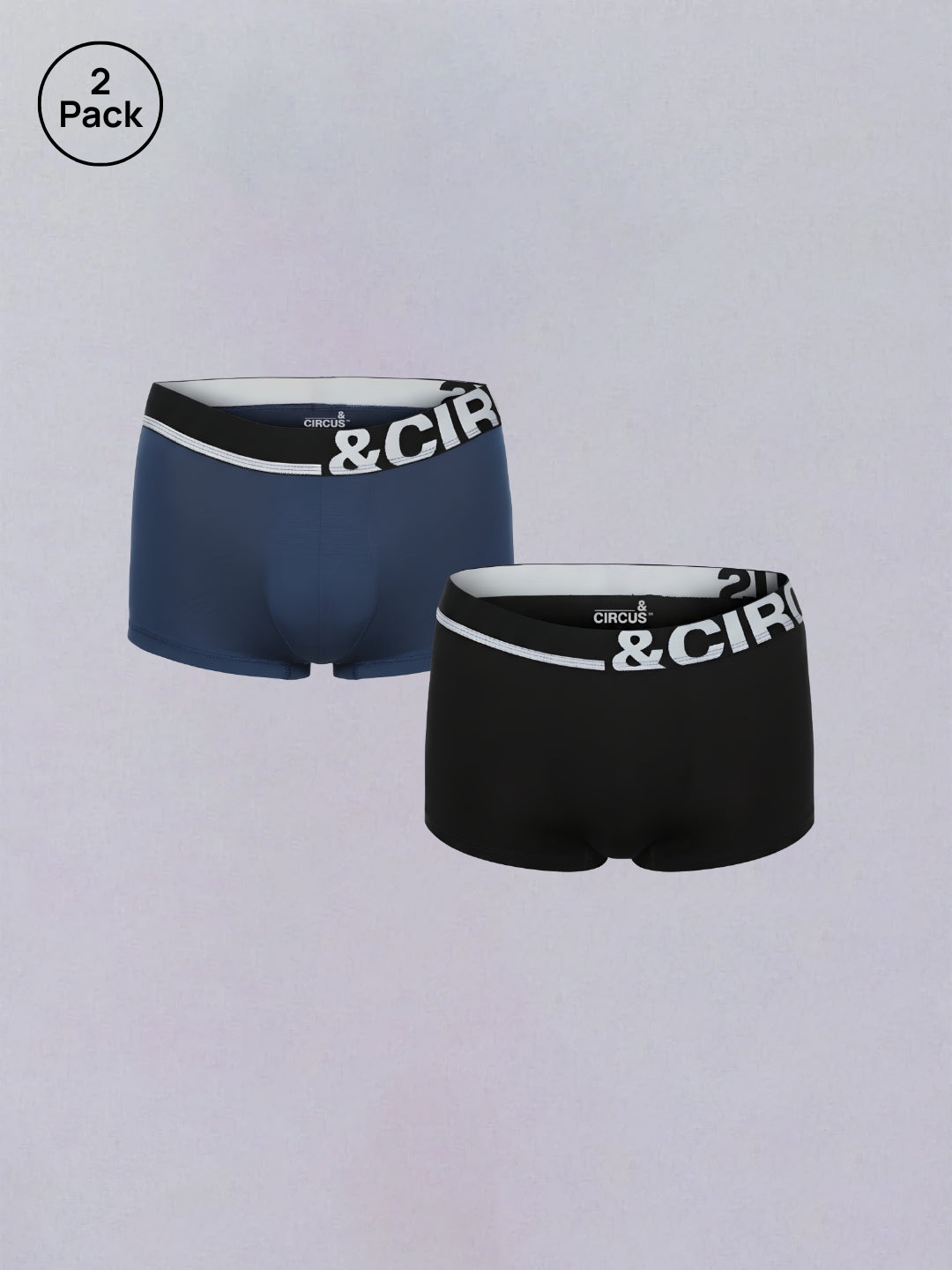 &Circus Men's trunks from the AirSoft collection are lightweight everyday essentials, built to give you a fine blend of comfort, style, and performance, with full coverage & adaptive pouch. Midnight Blue: The colour of the new year. Rich but chirpy. Sharp but silly. The you after the sun sets. Jet: A clinical edge to match what you bring to the table. Take it all in. Focus on just one. Our Midnight Blue & Jet pack of 2 trunks is available in sizes from S-2XL.