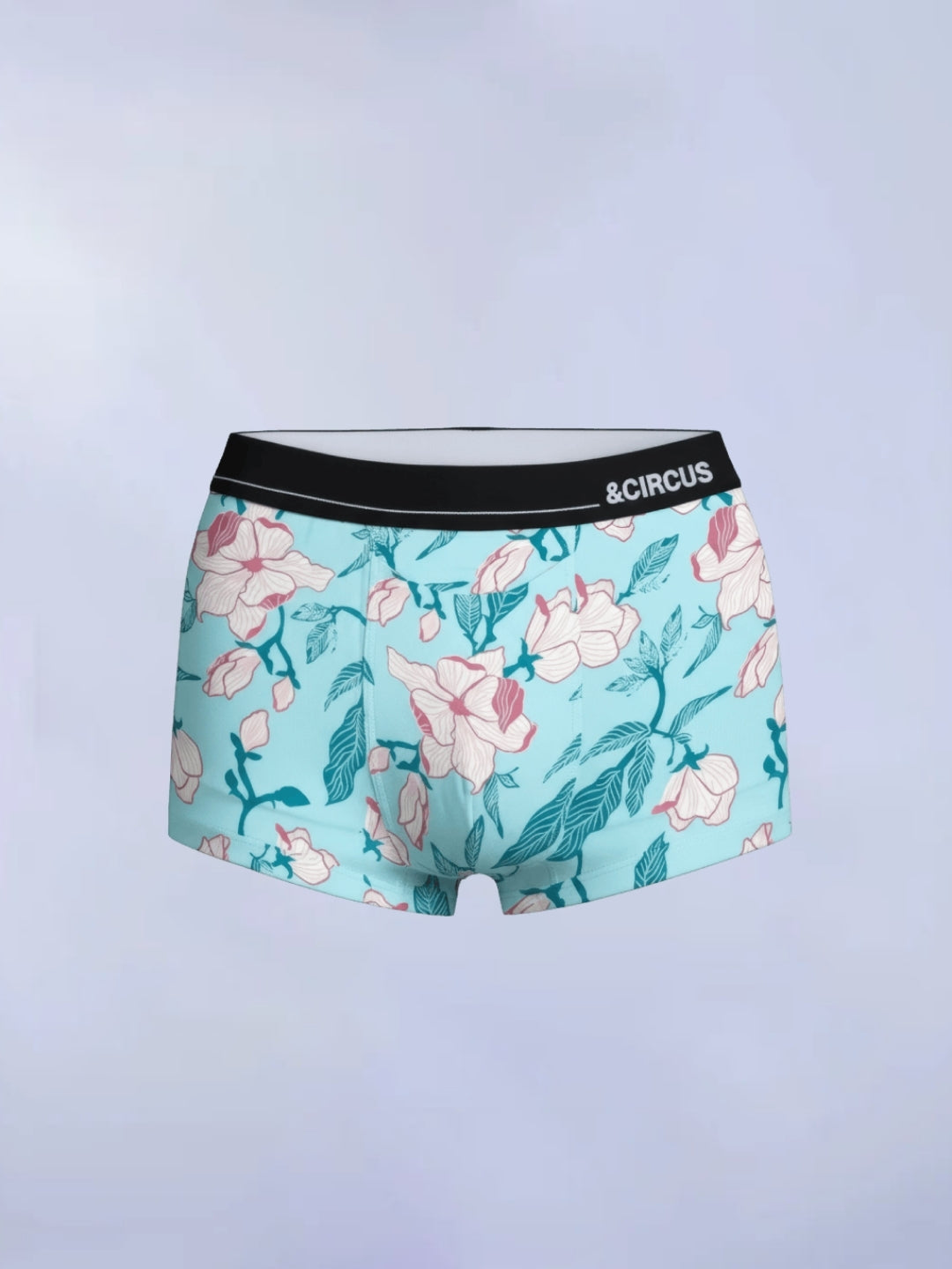 &Circus Men's trunks are classic and built to give you a fine blend of comfort, style, and performance. Our trunks for men provide full coverage with fly opening adaptive pouch. Our printed trunks Spring blooms because she blooms. Nature never wonders why. Nor does she preen herself to catch your eye. Printed trunks for men are available in sizes from S-3XL.