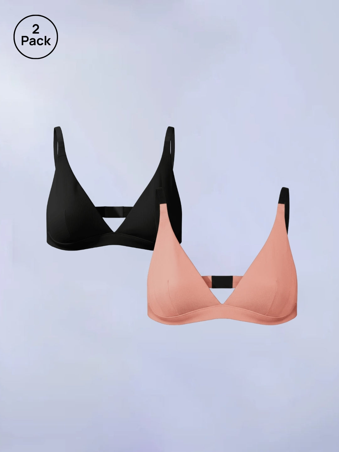 Our Onyx & Almond Nude Pack of 2 Solid triangle bras are a true no-show showstopper. Available in sizes XS-3XL.