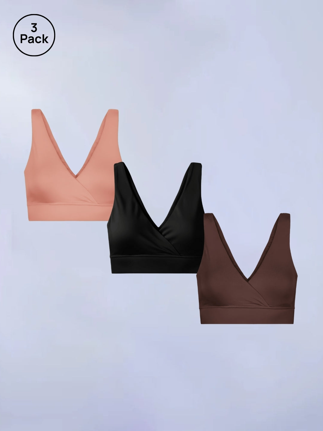 PURESOFT MATERNITY NURSING BRA- PACK OF 3- ALMOND NUDE, UMBER & ONYX