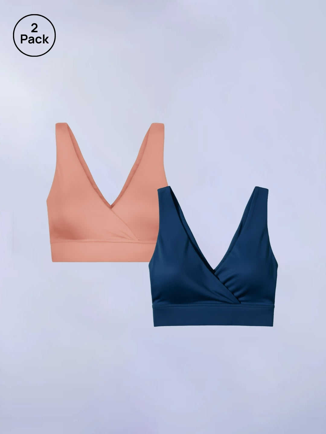 &Circus Pack of 2 Almond Nude & Blue Curacao maternity & nursing friendly bras for expecting & new mothers are mom essentials, and you can always add our leak-proof pads to cart for added safety. Designed for fuss-free pregnancy & feeding, these bras are AZO-free dyed.