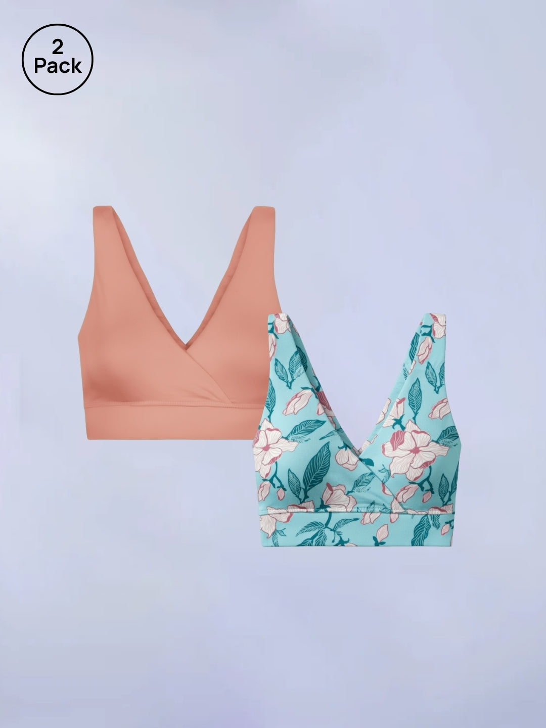 Our Spring & Almond Nude Pack of 2 solid & printed maternity bras are available from XS-5XL sizes, goodness & comfort redefined.