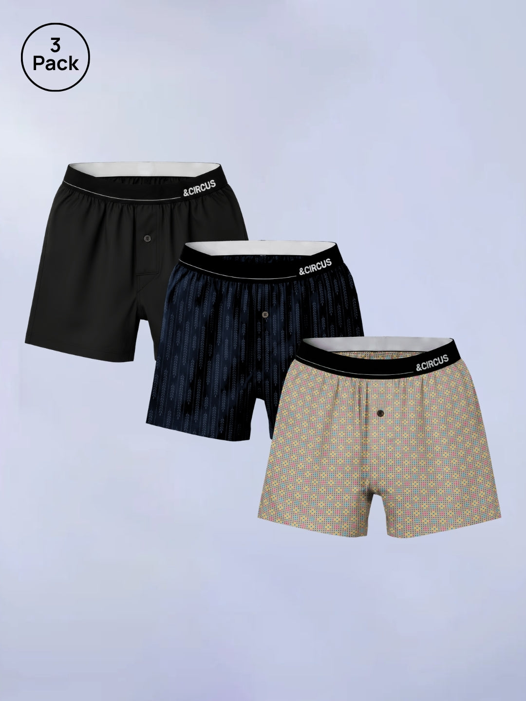 &Circus Pack of 3 Architect, Herringbone & Onyx Men's boxers are the definition of leisure, combining comfort & protection. Our boxers for men have a relaxed fit and are ideal for feeling naked and staying protected.