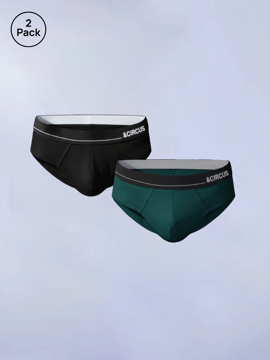 &Circus Pack of 2 Racing Green & Onyx Solid Men's briefs are classic underwear built to give you the ultimate combination of comfort, style, and functionality. Our briefs for men provide modest coverage for maximum comfort.