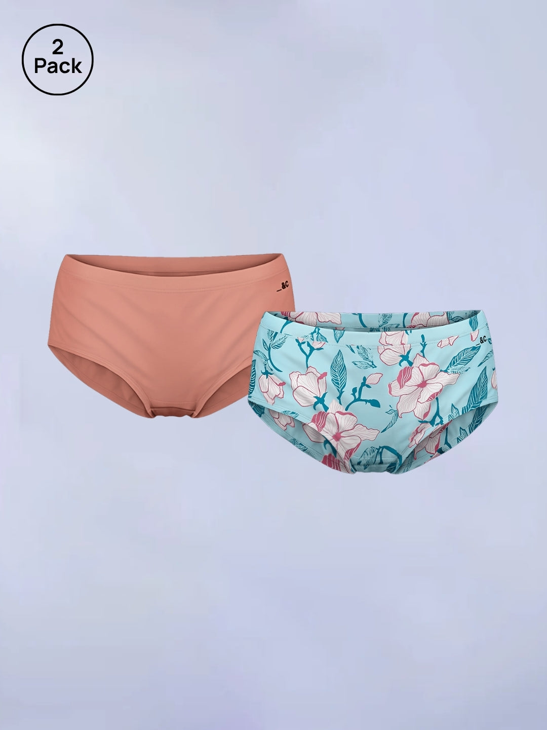 Our Almond Nude & Spring Pack of 2 Solid & Printed Bare Hipster briefs are a contemporary addition to drawers. Available in sizes XS-2XL.