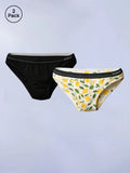 Our Onyx & Lemon Crush Pack of 2 Solid & Printed Bikini Briefs are available in sizes XS-2XL.