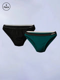 &Circus Pack of 2 Racing Green & Onyx bikini briefs for women are modelled after classic bikini briefs; low-rise & essential coverage; now they're hypoallergenic & breathable too.