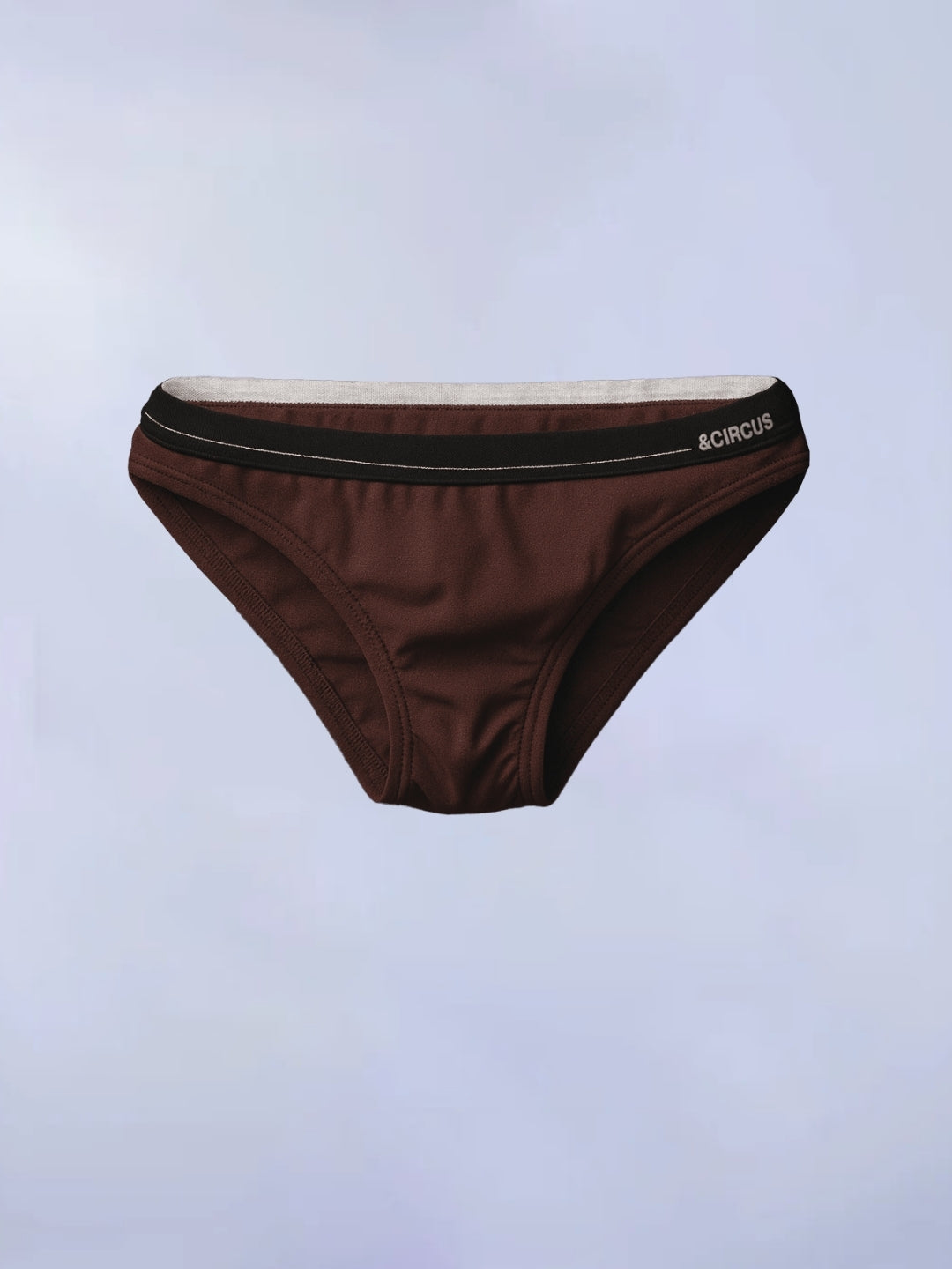 &Circus PureSoft bikini briefs for women are modelled after classic bikini briefs; low-rise & essential coverage; and they're hypoallergenic & breathable too. Our solid bikini briefs Umber is brown, as brown is beautiful. We know. An almost burnt, woody shade to bring a new edge to your range of nudes. Solid coloured bikini for women are available in sizes from S-2XL.